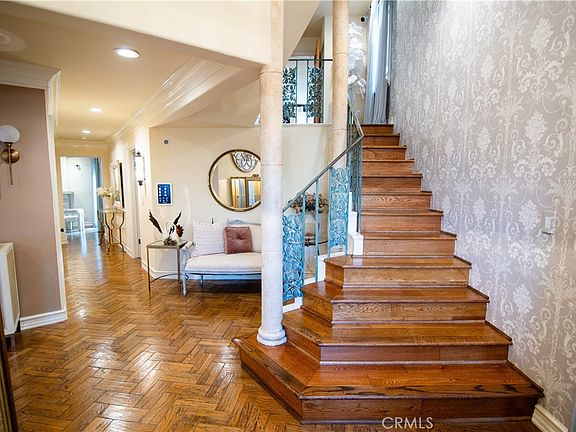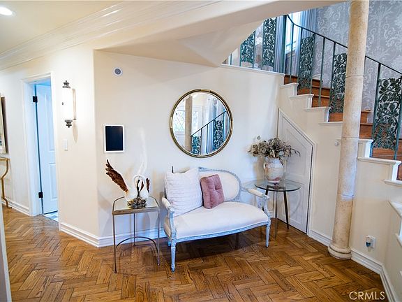 Experience refined coastal living in this exquisite French Provincial tri-level home, ideally positioned in exclusive Naples Island of Long Beach. Just steps from the scenic waterways and moments from world-class dining, this beautifully appointed residence offers timeless elegance with flexible furnishing options to suit your lifestyle. The first level welcomes you with a grand entry that opens to a formal living room featuring soaring vaulted ceilings, a fireplace, and a wet bar, perfect for entertaining your guests. The formal dining room showcases a stunning coffered ceiling with decorative floral inlays, and a stunning chandelier adding a touch of sophistication. A spacious eat-in kitchen anchors the rear of the home, complete with a large center island and prep sink, full suite of appliances, and direct access to a private patio with built-in BBQ, ideal for alfresco dining. A guest powder room, indoor laundry, and direct-access two-car garage complete this level. The second level offers three bedrooms and a large family/media room with its own wet bar and wine refrigerator. One of the bedrooms features an en suite bath, while another versatile space toward the rear adapts beautifully as a private bedroom, executive home office, or personal fitness studio, perfect for today's flexible lifestyle. A second full bath serves the remaining rooms. Ascending to the third level, you'll find the primary suite, a serene retreat featuring a fireplace, walk-in closet, and a newly remodeled spa-inspired bath with floor-to-ceiling tile, a floating vanity, modern fixtures, and an expansive dual-head walk-in shower. The entire suite is designed for privacy and comfort, separated from the rest of the home. A few steps above the primary suite leads to the rooftop deck, an entertainer's dream with panoramic 360 views of Naples Island, comfortable patio seating, and a gas fire pit that is perfect for sunset gatherings or evening relaxation. This exceptional home combines timeless European charm with modern amenities, all within Naples Island's coveted waterfront enclave, one of Southern California's most distinguished residential communities.