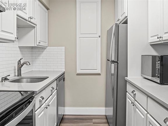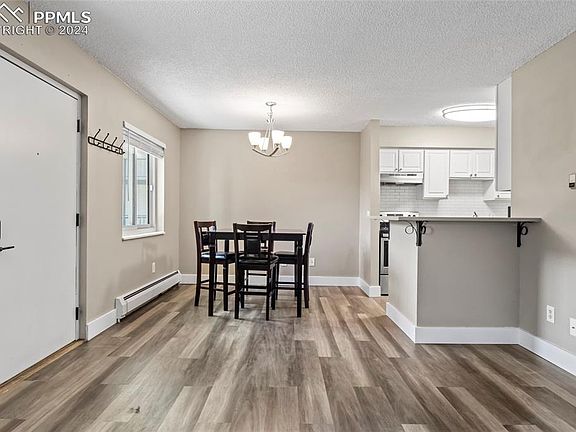 This beautifully updated 2-bedroom, 1-bathroom condominium, located in the desirable Jasmine Condos community, presents an exceptional opportunity for homebuyers seeking value and style. The entire unit flooring has been replaced with a high quality LVP. The kitchen has new ceasar quartz countertops, a stylish subway tile backsplash, and stainless steel appliances. It's also more open than in other units. The bathroom also has a caesar quartz countertop. One of the bedrooms has an attached covered patio, perfect for morning coffee or quiet evenings. The Jasmine Condos community includes a clubhouse, coin laundry, a pool, and a community garden area. Heat is included in the HOA dues. This condo is ideally situated two doors down from the laundry facilities. Additionally, its proximity to major highways, shopping centers, and schools means everything is within easy reach. Also has a separate storage locker.