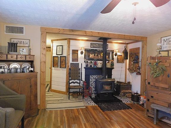 We have updated everything in the house down to the windows and doors, the wiring and custom cabinets and many extras, the openness gives us so much room and we enjoy the wood burning heater warming us on the cold evening it heats the whole house. We also have a large shop in back and a smaller storage bld. The patio is nice in the summer and the large front porch.