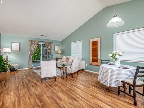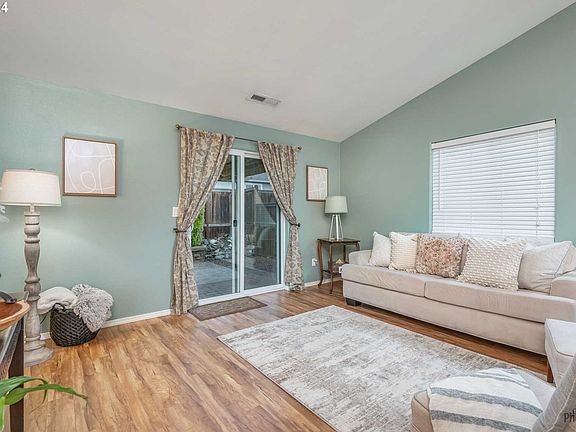 Welcome to your new home in the desirable Jasper Meadow subdivision in Thurston! This single-level gem is nestled in a welcoming community with easy access to a nearby park, perfect for enjoying outdoor activities and creating lasting memories. Step inside and be captivated by the airy ambiance created by the vaulted ceilings in this thoughtfully designed home. The open-concept living and dining room seamlessly flow together, providing an ideal space for both relaxation and entertainment. Imagine hosting gatherings with friends and family in this inviting and spacious setting. Sliding glass doors lead you to a covered patio, extending your living space outdoors and offering a private retreat to enjoy the fresh air. The engineered hardwood floors in the main living space add a touch of elegance and warmth, creating a cohesive and stylish atmosphere. Fresh interior/exterior paint and newer carpet makes this home move in ready.This single-level home in Thurston's Jasper Meadow subdivision not only provides comfort and convenience but also offers a lifestyle surrounded by nature and community. Don't miss the chance to make this your forever home! Schedule your tour today.
