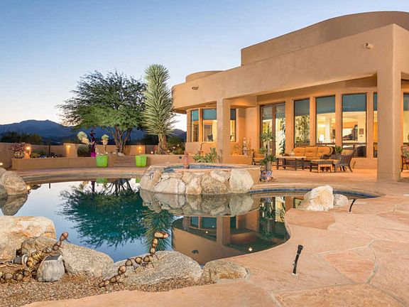 TAR AND KWSA TOUR WINNER FOR LUXURY HOME TOUR 2016A MUST SEE TODAY!This is a true gem both architecturally and aesthetically. Graceful lines distinguish the beautifully crafted home with windows showcasing the incredible views of the mountains, valley and city lights. This custom built home boasts 3 bedrooms, 3 full baths, music room, media room, office, and 4 car garage. Over 3 acres on a high elevation, abutting The Saguaro Natl Park, this homesite features the ultimate in desert landscape and breathtaking views. The interior of this distinguished home is comprised of the finest details and finishes: from the custom cabinets to the trey ceilings with recessed lighting. The casual elegance of the patio, pool and spa lend themselves equally to tranquil relaxation and grand enterta
