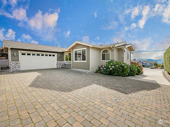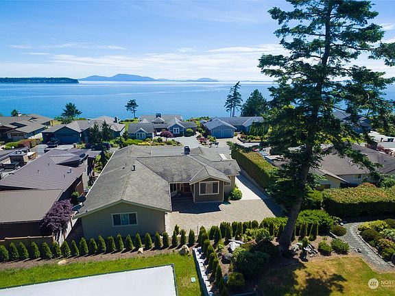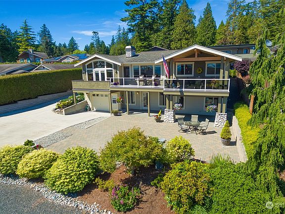 Birch Bay Village stunner, a wow! JWR Design / gated community. Northwest Contemporary waterview Craftsman. Options with this home. 1828 sq. ft. on the primary level and 906 sq. ft. on the Garden level. Gentle driveway takes you up to the primary level with 2 car garage. This level features the primary bedroom & ensuite full bath, Great room concept, grand kitchen featuring a 5x9 granite countertop island, Pantry, office, dining room, guest 3/4 bath, utility room & over 1000 sq. ft.=/- of covered & uncovered deck & patio space. Garden level features separate entry, single car garage, 2 bedrooms, kitchen, utility rm, 3/4 bath, 2 extra storage spaces, & water feature, best patio areas you will with mature landscaping. Home warranty included.