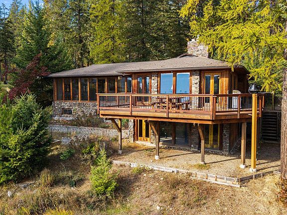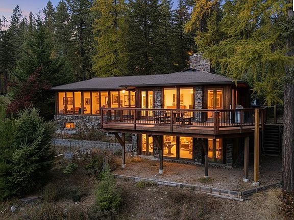 Welcome to 5770 Sagle Rd, where comfort, space, and natural beauty come together. This 4-bedroom, 2-bath home offers 2,774 sq. ft. of inviting living space on 4.66 acres across two lots, giving you room to expand, build, or simply enjoy the privacy. Inside, the main level is bright and open, filled with natural light from floor-to-ceiling windows that frame panoramic views of Lake Pend Oreille and the Rocky Mountains. The vaulted ceilings feature cedar tongue-and-groove, adding warmth and character throughout. A large stone fireplace creates a cozy gathering spot, and the open kitchen and dining area flow easily to the spacious outdoor deck—ideal for relaxing or entertaining. An attached carport offers convenient parking, and the detached garage provides extra storage or workspace. Located minutes from Garfield Bay’s public beach and boat launch, and within easy reach of Sandpoint and Schweitzer Mountain Resort, this home is a peaceful retreat close to the water, town, and mountains.
