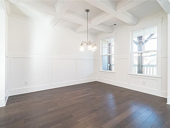 The Woodbury floor plan welcomes you with a rocking-chair front porch. A large daylight basement opens to a serene, level grass backyard that overlooks a wooded area to enjoyalong. Hardwood floors gleam throughout the main level. Home is bright with natural light throughout. Coffered ceiling in dining room, study or home office on main, bedroom & full bath on main. Gorgeous kitchen with stainless steel appliances, stained cabinets, quartz countertops & tiled stone backsplash. The upstairs does not disappoint, with a large master suite and spacious master bath and big secondary bedrooms. Woodbury floor plan; Seller will pay $5,000 in closing costs with approved lender!