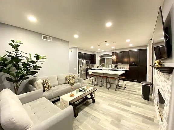 Located in a quiet, well-kept neighborhood, this nicely maintained home offers 4 bedrooms, 3 bathrooms, and nearly 1,900 square feet of comfortable living space great for families or professionals. Inside, you'll find an open layout with high ceilings, lots of natural light, and a spacious living and dining area. The modern kitchen features granite countertops, a center island, stainless steel appliances, and plenty of cabinets ideal for cooking and entertaining. The large primary suite includes a walk-in closet, dual sinks, a soaking tub, and a separate shower. A downstairs bedroom with a full bath is perfect for guests, a home office, or multigenerational living.