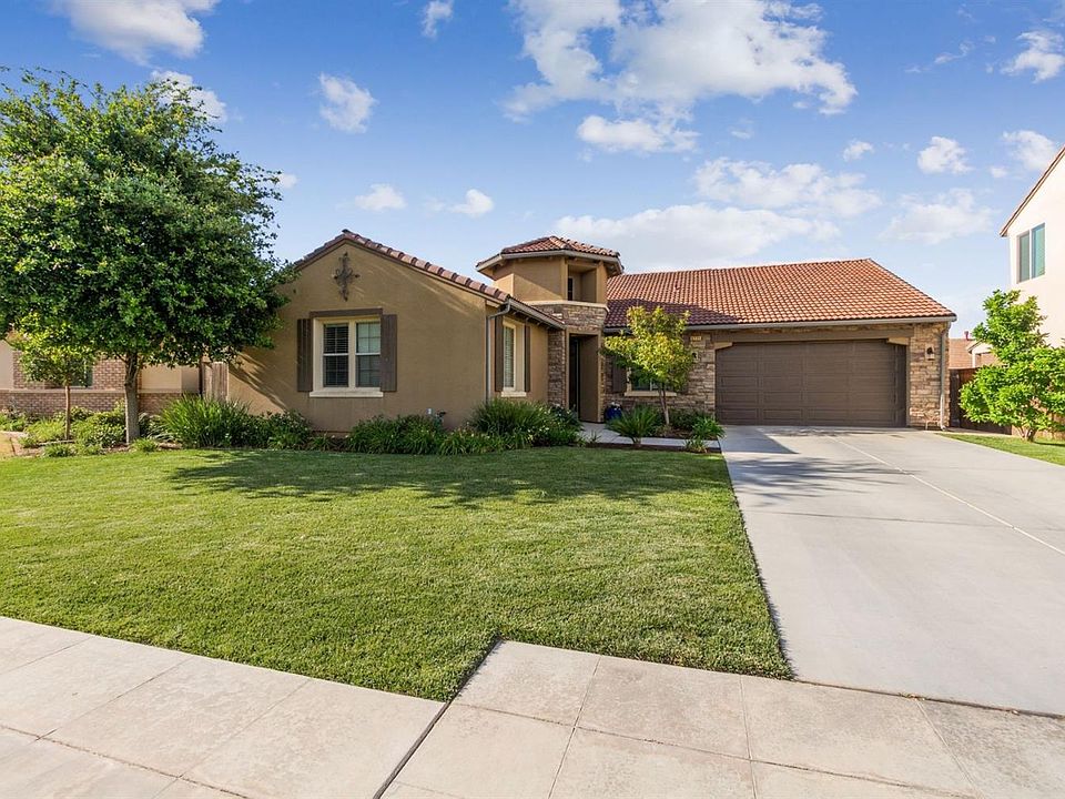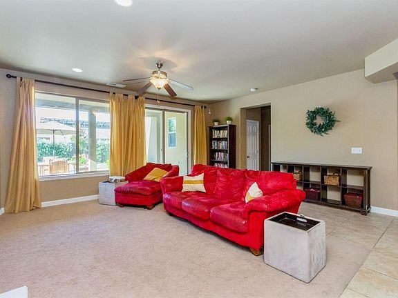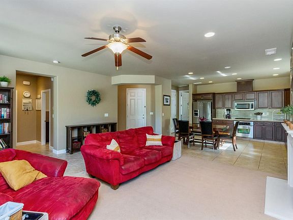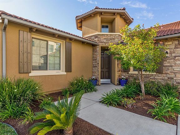 Step inside and enjoy one of the most popular McCaffrey models with its lovely open concept floor plan. Entertain with ease in this wonderful, spacious kitchen featuring granite counter tops, stainless steel appliances which opens into a living room complete with fireplace and custom built-in entertainment center. This home boasts 4 bedrooms and 3 baths. Are you looking for a home with the isolated bed and bath for the teen wanting his own space or a place for family to come and stay? Look no further. Also included is a very enjoyable covered patio with its own fire pit and built in speakers to spend the evenings in a relaxing backyard.. Pick lemons, oranges, nectarines and apples from your own trees, and regulate your watering from your phone with Smart Watering.
