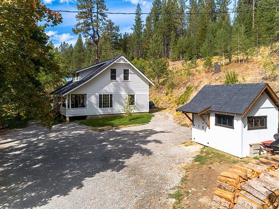 Beautiful remodeled old farmhome with tons of charm located in desirable Cougar Gulch on 5.29 acres. Private, peaceful setting with lots of wildlife such as deer, turkey, and elk. Country setting, yet only 10 minutes to downtown CDA. Room for a shop! Newer electrical, plumbing, insulation, roof, and windows. EPA efficient wood stove and multiple outbuildings including an appealing chicken coop. Incredible views all around and even enjoy a picnic at the top of the property. Mature shade trees and fruit trees including pear, plum and apple trees. 2 water sources include private well and spring. This home is a must see!