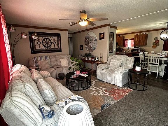 Come see your practically new 1,352 sq. ft. home on a 1.12 acre corner lot in a tranquil neighborhood that's far enough from the noise and traffic, but close enough to shopping and medical facilities. This mobile home is a Live Oak Trenton Elite 2023 model. 3 bedrooms and 2 full bathrooms highlight this open concept split floor plan. Each bedroom features a walk-in closet and carpet floors. The Master bathroom features dual sinks, a garden tub (that's never been used), and a separate shower with wood-look vinyl floors. The guest bathroom, kitchen, dining room and laundry room also have the wood-look vinyl floors. The kitchen and dining room offer views of the expansive backyard with room for a pool, screened-in porch, or livestock. The island in the kitchen provides extra storage and the dishwasher has never been used. The countertops in the kitchen and bathrooms have a granite look. The living room and Master bedroom have ceiling fans. Wood crown molding in living, dining, and kitchen area. There's even a chicken coop and a 12x11 back wooden deck already built on the property. Well and septic existing. No HOA or deed restrictions. Come see this one now, while it lasts!