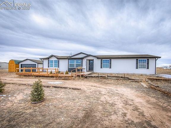 Updated, Beautiful 4 BR / 2 BA / 2 CAR Manufacturer home on a permanent foundation, 2.5 acres horse property. True country living while close to Falcon Shopping and schools! Very spacious floor plan with large bedrooms, great room and family room! New Kitchen with granite counters, plenty of counter and cabinet space large master bedroom with 5-piece bath, soaking tub and freestanding shower, walk-in closets.Gorgeous mountain views from the decks. Plenty of outdoor space for RV's and zoned for up to 2 horses! Property is on a septic system that has been inspected and certified, gas is provided through Colorado Springs Utilities.
