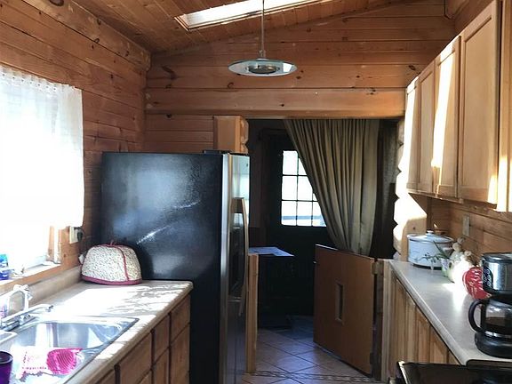 Wood clad cabin with good bones. Newer roof sections in 2017. New furnace in 2015. 2.79 acres with endless possibilities. 2 car garage workshop and fenced area for dogs. Kitchen was redone in 2010, new flooring throughout dining and living room spaces. Plenty of room with tons of potential.