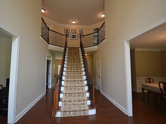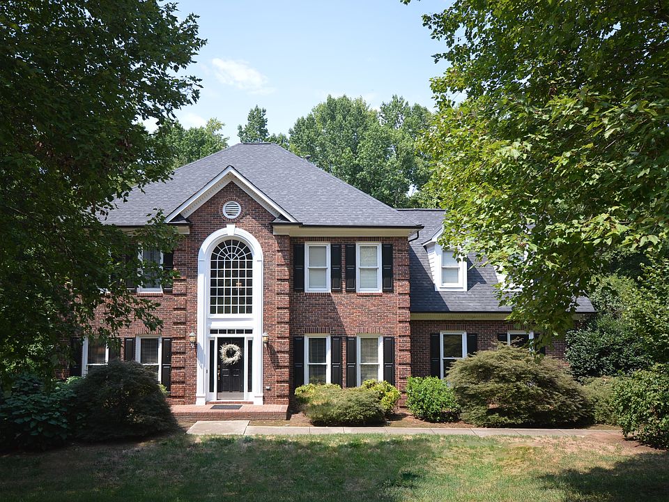 Full Brick home in established Carriage Downs. Wrought iron staircase greets you in foyer, hardwoods through main level. Updated kitchen with granite island, stainless steel appliances and open to living room. Wonderful for entertaining! Office with French doors plus recreation room on main level. Upstairs boasts four bedrooms plus huge bonus and three full baths. Master suite has elegant bath and tray ceiling in bedroom. Screened porch overlooking private fenced yard that backs up to woods. Home has so many wonderful features!