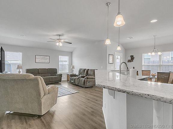 Open floor plan, spacious kitchen looking into living area. Great for families and entertaining. Primary bedroom on one end of home. Fully fenced yard and neighborhood park. Move in ready.