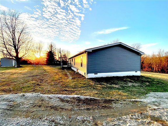 Recently remodeled large manufactured home located just outside of Greenville, off of Voyles Rd. The home is nestled in the middle of 3.97 acre lot and has 3 bedrooms with the split bedroom plan, 2 full bathrooms, and an office/nursery/den room next to the master bedroom. Spacious kitchen with breakfast bar and pantry, overlooks the dining room. Laundry room located conveniently off of kitchen with a door out to the back yard. Relax on the back deck and watch the deer and other wildlife wander through your field. There is plenty of room to build a garage or other out building on this large lot. Buyer to verify taxes, exemptions, schools, and any items they deem necessary. Square footage and measurements are approximate. Owners of LLC are licensed real estate agents in Indiana.