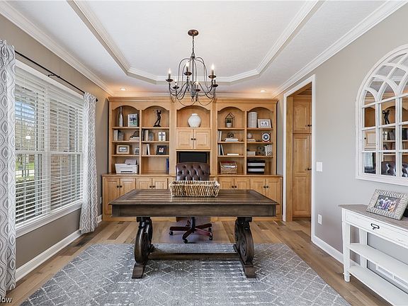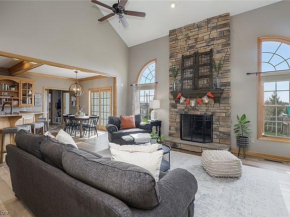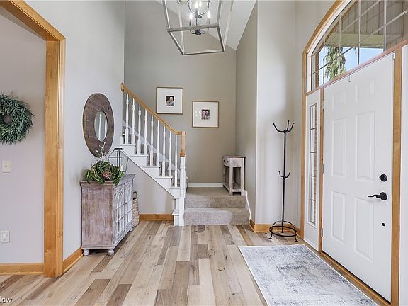 You will fall in love with the floorplan of this gorgeous 4 four-bedroom, 3.5 bath Jackson Township home in Carrington Estates! The owners have taken extreme care in maintaining and tastefully updating the home from top to bottom. Upon entering the home from the spacious three-car garage, you'll be pleasantly delighted with a built-in locker area for dropping coats and book bags and a first-floor laundry! The bright maple eat-in kitchen has a lovely slider to the outdoor entertaining area. Your guests will love the stamped patio with a built-in gas fire pit and the immaculate black iron-fenced backyard. Back inside, the kitchen opens to a two-story great room with a floor-to-ceiling stone-faced fireplace. Not only is the master suite with double walk-in closets and a large master bath conveniently located on the first floor, but a second first-floor bedroom is also nearby, perfect for keeping little ones close! With so much natural light pouring into this space, the cheery office is th