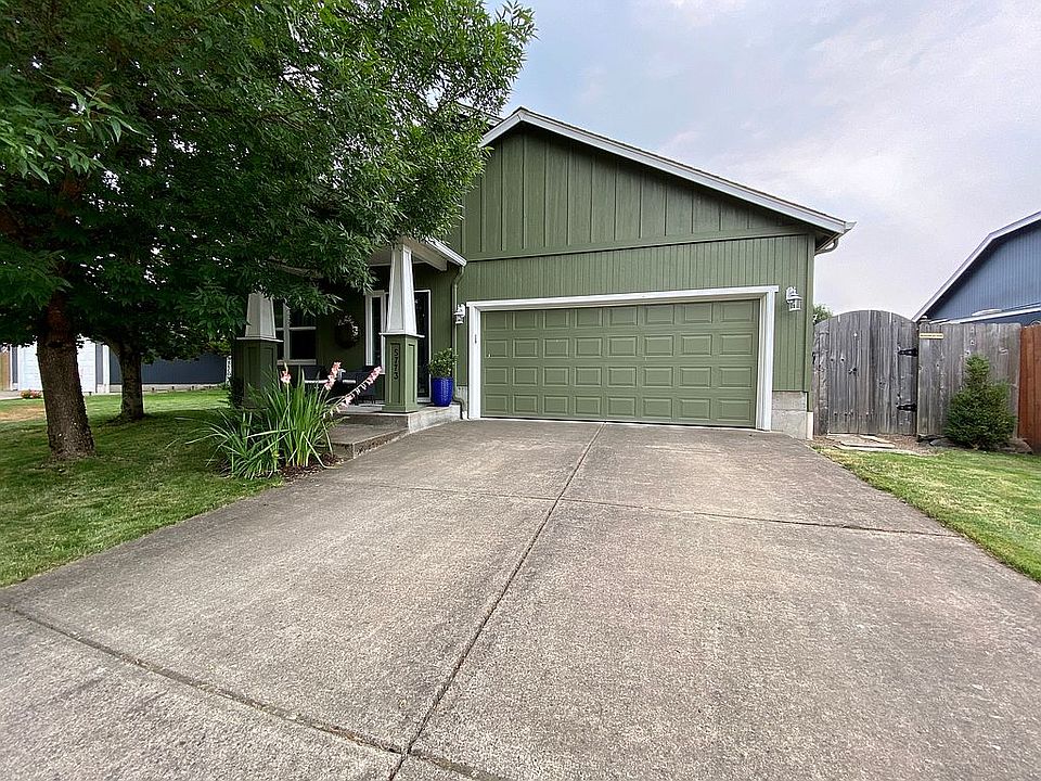 Lovely comfortable & cozy home in Thurston with three bedrooms two bathrooms- featuring a remodeled open kitchen, living area includes 9 ft ceilings & gas fireplace with tile mantle. Painted cabinets, built in microwave, dishwasher, & pantry. Energy efficient heat pump-electric & gas water heater. Two car garage, font & back Sprinklers- raised garden bed and covered outdoor living space! *Occupied by home owner