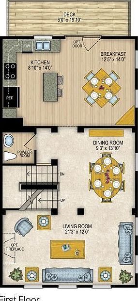 The extra-large kitchen has its own breakfast area and access to the spacious deck. Downstairs, you'll find an oversized den and tow-car garage.