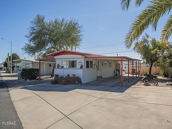 This 805-square-foot mobile home in Tucson Estates has one bedroom, two bathrooms, a family room, an office/den, and a sunroom with a 240 sq ft enclosed storage/workshop. This community has a pool, spa, pickleball courts, RV storage, and so much more. At this price, this house won't last!