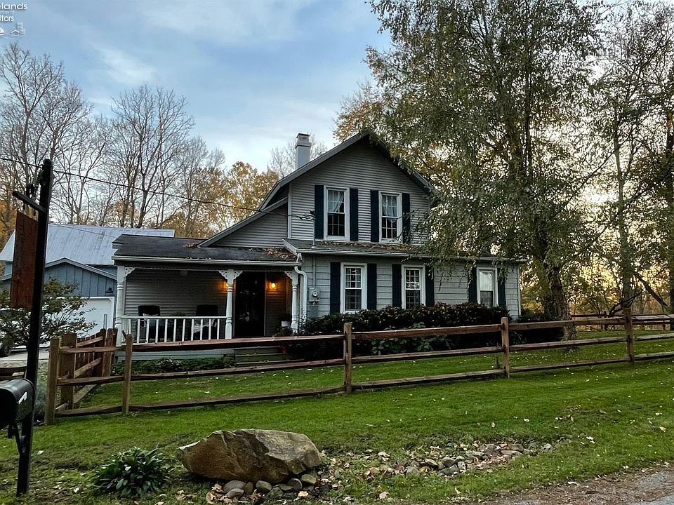 Country living at it's best: 7 acres, woods, ravine, and a river! 2-story 3 bedroom/2 full bath home in Wakeman. Many updates: plumbing, electric, furnace, roof, kitchen 2015, laundry room & foyer 2018, carpet in bedrooms 2021, all hard-wood floors refinished, new ceiling fans and all light fixtures new throughout home, entire home freshly painted. Spacious family room, first floor master bedroom and laundry room. Large decks built in 2019 that over look the ravine, woods, and river to entertain small to large parties including an above ground swimming pool. 4-wheeler trails to ride and wildlife galore! There is a large out building for storage and all appliances come with home. The family room was built in 2011, Master bedroom & bathroom, and laundry room was built in 2006. Note: pool slide does not stay with property.