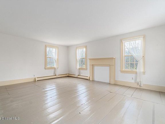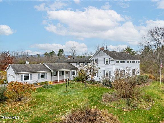 Discover unmatched character in this expanded historic farmhouse nestled on nearly 3 scenic acres in Voorheesville. This spacious home welcomes you with a traditional entryway, leading into an interior rich with hardwood flooring throughout. The inviting living room showcases large windows, filling the space w/ natural light & serene views of nature, perfect for relaxing by the cozy fireplace. The open kitchen boasts an oversized eat-in area, and a formal dining room ideal for gatherings. The 1st floor master suite is a private retreat, featuring double sinks, jetted tub, a stand-up shower, and stunning outdoor views. An adjacent office provides a convenient workspace. Outside is an oversized attached 2-car garage and a detached 2-car garage with a greenhouse, & a massive garden awaits.