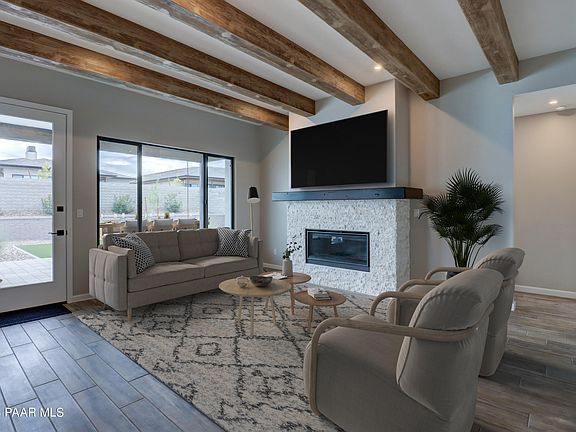 Stunning Home with Luxurious Upgrades & Entertainer's Dream Backyard! This property boasts an array of luxurious upgrades, open floor plan, & beautifully landscaped backyard. Beamed, vaulted ceilings adds a touch of elegance. The tile flooring lends a sleek, modern feel. This kitchen offers everything you need to prepare your favorite meals & entertain in style. Moving outside, the beautifully landscaped backyard features an outdoor grill & fireplace, providing the perfect setting for hosting family gatherings or enjoying a relaxing evening under the stars. Every inch of this stunning Prescott Valley home has been thoughtfully designed & upgraded to offer a luxurious living experience. Don't miss out on the opportunity to own this dream home in the desirable Jasper community!