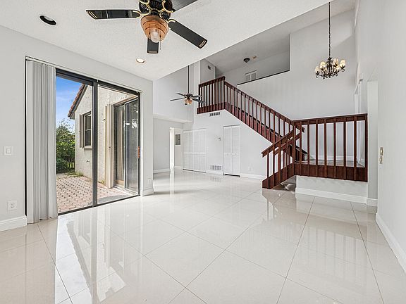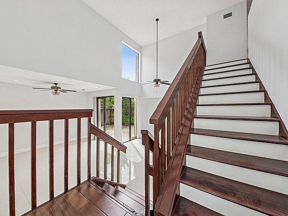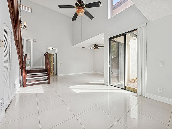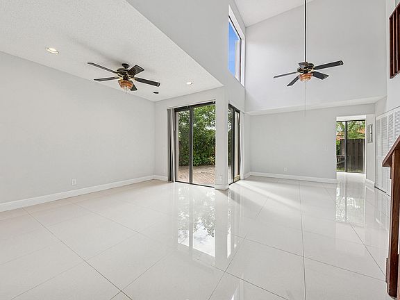 Welcome to this 3 bed, 3 bath townhouse located in one of Boca Raton's most sought after gated communities with 24-hr manned security. As you step inside, you're greeted by vaulted ceilings that enhance the open feel of the living space. The home features a desirable floor plan with one bed & a full bath located on the first floor & two spacious en-suite bedrooms upstairs. Freshly painted throughout with neutral tile flooring on the main level & wood-look flooring upstairs. The kitchen has granite countertops & SS appliances with a washer/dryer in unit. Enjoy the outdoors from your private enclosed backyard with a charming patio. This residence is walking distance to Town Center Mall & Boca Raton Tennis & Aquatic Center, placing premier shopping, dining & recreation right at your doorstep The well-managed HOA with reserves of 10%+ reflecting strong community maintenance and financial stability. HOA Fees decreased per month for 2026.