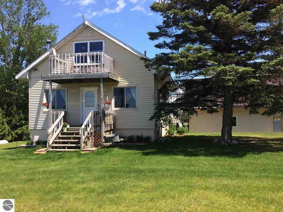 Welcome home! This unique and charming family home sits on top of a peaceful country side view. Home features 4 bedrooms. Upper level has 2 bedrooms and a half bath. Main floor has a large bedroom and full bath. Take in the views off from the main level two story deck. Lower walk out level is completely remodeled with a large bedroom, half bath already plumbed for full bath. Large detached garage features a bonus storage room above. Both the home and garage have new roofs installed in the last 2 years. Choose from efficient wood stove heating or propane. This two acre lot has so much to offer. Sweet spring fed pond is filled with goldfish and frogs. The barn has plenty of room for any 4-H project, or extra storage. Bring the chickens and the ducks. Enjoy country living only 20 minutes from Traverse City.