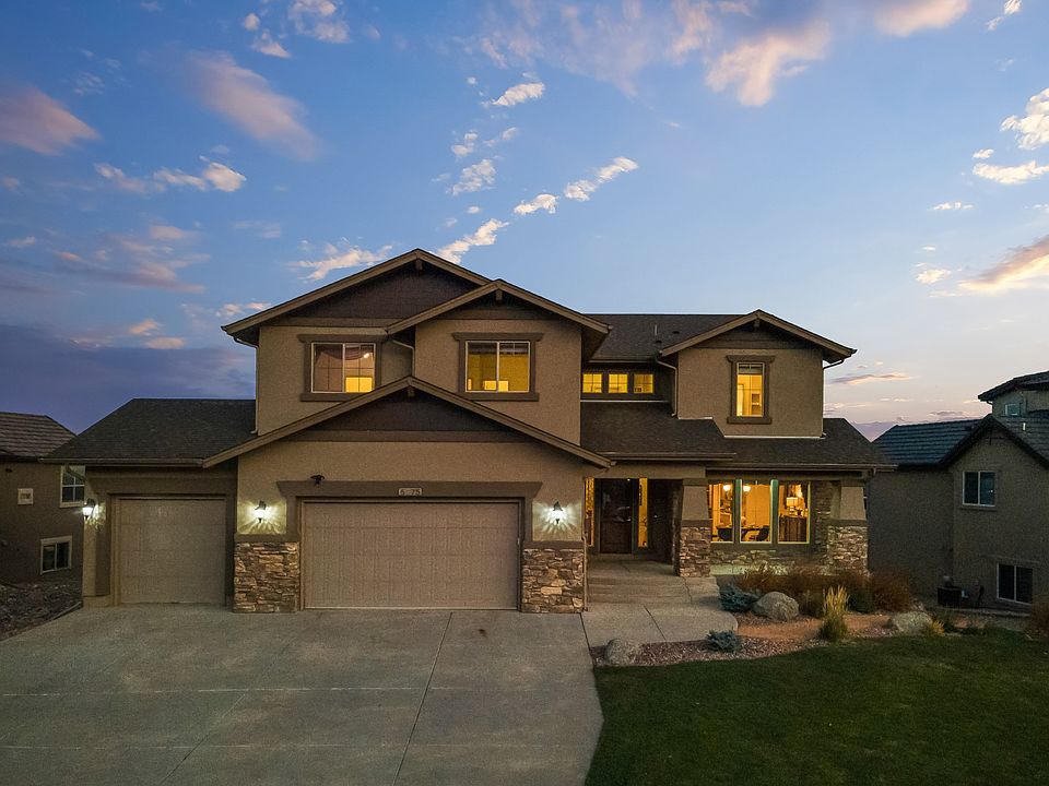 Welcome to your new home on the northwest side of Colorado Springs! Located adjacent to a quiet cul-de-sac, this spacious 6 bedroom, 5 bathroom house is an ideal home. This home is fully updated and you will be able to move right in. There is abundant storage space as this house has a three-car garage with epoxy flooring and large storage cabinets. Settle in and enjoy a morning coffee sitting on your covered front porch. From this hilltop location, you have beautiful views of both the city and the mountains. The main level of the home boasts an open concept kitchen, living, and dining area, plus a formal dining room. The living room has a beautiful feature fireplace with stone and wood details, including built-in shelves. It's the perfect location for a gathering of your family and friends, with floor to ceiling windows that let the Colorado sunshine stream in. From this home, you are minutes away from some of the best parks and attractions in Colorado Springs, including Garden of the Gods, Ute Valley Park, Flying W Ranch, and Old Colorado City. OPEN HOUSE 11/4 from 4:30pm-6:30pm