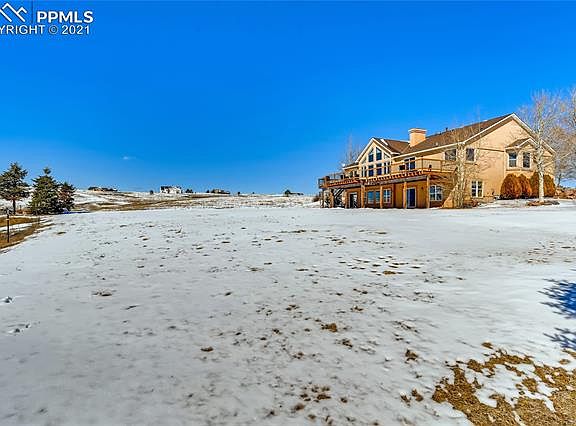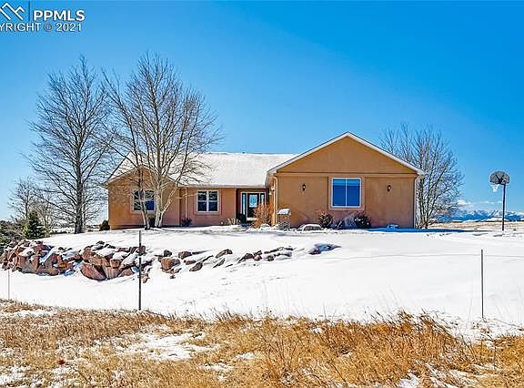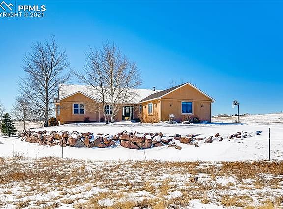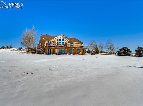 THIS IS THE ONE YOU'VE BEEN WAITING FOR! Truly one-of-a-kind 36 acre property only 15 minutes from town & features some of the best unobstructed views of Pikes Peak in all of Black Forest! Single-owner 4700 sqft open concept ranch floor plan w/ massive back deck for those incredible Colorado sunsets, large drive through horse barn w/ heated workshop. Main level w/ large entry, vaulted ceilings, gas fireplace w/ stone surround, kitchen w/ large center island & gas range, dining area & dedicated laundry room w/ sink & cabinets. South-facing windows allow natural sunlight throughout the home and showcase the mountains to the west. Master retreat w/ vaulted ceilings, office, double-sided fireplace, 5 pc master bath & walk-in closet. Walkout basement w/ 2 additional bedrooms, oversized full bath & a MASSIVE rec room. Oversized 3 car heated garage is even with the main level. Well permitted for livestock, poultry, irrigation & household water use for up to 3 single family dwellings. Property is also zoned RR-5 so can be subdivided into 5 acre lots.