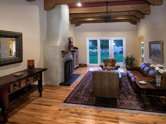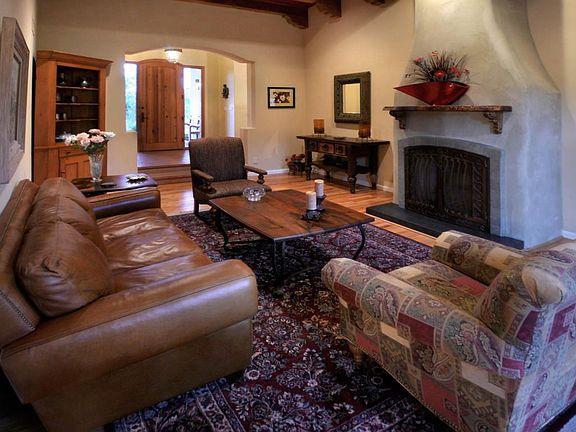 Outstanding and recently remodeled southwestern in prestigious, gated La Paloma Estates. Located on a quiet cul-de-sac with Catalina Mountain views, this quality home offers 8' rustic entry door into brick foyer opening to the living room with high beamed ceiling, hardwood floors, Rumford fireplace and mountain views. Remodeled gourmet kitchen features granite counters, cherry cabinets, stainless steel appliances, Wolf six burner cook top, hardwood floors and breakfast area. Brick floored family room with high planked ceiling and beams offers entertainment center & oversized fireplace. Master suite has fireplace & balcony retreat, master bath with slate floors and spa tub. Den with slate floors has built-in wine storage and custom sauna. Private rear yard features wood beamed covered porch