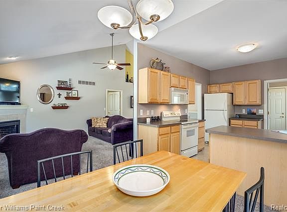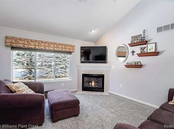 Lovely Ranch Condo located minutes from Hall Road and Sterling Heights' Golden Corridor with shopping, restaurants andentertainment. Vaulted ceilings give the charming family room an open-air and the fireplace invites you to settle in forthe night to watch a favorite movie, while surround sound speakers assure you miss nothing. The direct entrance from thegarage welcomes you into the 1st-floor laundry room and pantry and pulls you through to a kitchen with plenty of cabinetand counter space to get you cooking! Grab a cup of coffee and enjoy on your private deck. The master bedroom boasts avaulted ceiling, bay window, full bath and walk-in closet with built-in shelving. The second bedroom brings in thesouthern sunlight for a bright workspace, library or guestroom. Head downstairs to the partially finished basement toentertain in style. The wet bar and rec room offer plenty of opportunity to relax and unwind with friends. There is alsoa half-bath for your convenience.