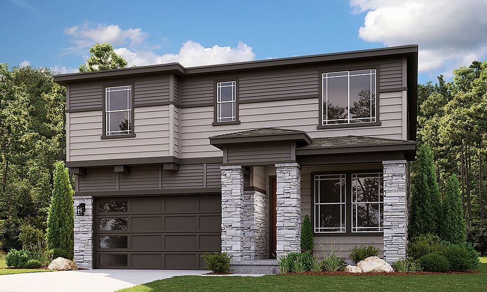 Contemporary family-inspired design makes the Telluride a standout. The kitchen overlooks the everyday dining space and features an eat-in island and expansive walk-in pantry. Airy volume ceilings in the gathering room invite family time and entertaining. The second story offers a private owner's suite, a family loft and two additional bedrooms. A three-car tandem garage, large laundry room and options for up to 6 bedrooms are perfect for growing families. *Photos are meant to show floorplan and layout only. Interior and exterior finishes are subject to change.