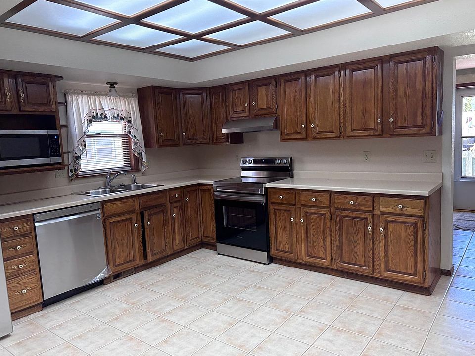Nicest home in the neighborhood! New kitchen appliances, freshly painted inside and out. New window coverings and new carpet in several rooms. Main level has 2 bedrooms, plus office, large entryway room and large walk-in pantry. Lots and lots of space. Laundry room is downstairs, with washer and dryer included, as well as the second bathroom. Fully finished basement with two non-conforming bedrooms. Large fenced yard in front and nice backyard to enjoy the Colorado summers. Included in the monthly rent is water, sewer and trash services. Tenant is responsible for gas and electric.
