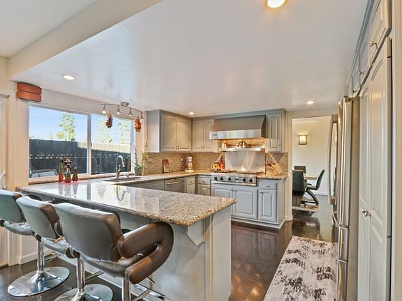 NEW IMPROVED PRICE POINT! The home was completely overhauled & features high end finishings. New outside paint as of 2019, newer dual pane windows, remodeled kitchen w/stainless steel appliances, a Viking gas cooktop w/grill, granite counter-tops a large island that opens to the family room. The family room has custom built-ins & a fireplace. All the bathrooms have been remodeled w/granite, remodeled vanities, upgraded showers/baths & new paint. The BEST part is a full bedroom downstairs w/a 3/4 bath directly next to it. Upstairs are 4 spacious bedrooms 1 of which added a kitchenette, complete w/cabinets, sink, breakfast bar & room for a refrigerator! There is a walk in closet too! There is a large open landing at the top of the stairs w/central bathroom dual sinks & a master suite. The master is absolutely HUGE & features two sliding glass doors w/plantation shutters that allow the SOUTHERN breeze to flow into the home. The master has custom California Closet systems, custom wood dual entry doors, custom wood & glass entry doors to the bath. The master bath is exceptional w/a walk-in shower, jacuzzi tub, custom vanity & stone flooring. The home is on a large lot w/R.V. access approx. 45 Ft deep w/dual gates, cement pad & access to the garage. There is a brick fire pit, raised patio w/artificial turf, swimming pool & spa (both recently re-finished) & another side yard used as a batting cage!