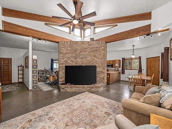 This Earth-Berm home is an eco-conscious buyer’s dream, providing a distinctive and sustainable living experience with a unique and thoughtful layout showcasing vaulted beam ceilings and a spacious kitchen with oak cabinetry, Corian countertops, and scenic views overlooking the private, tree-lined property. Primary suite with large walk-in closet, dual sinks, and large walk-in shower. You will enjoy starting the garden early in the solarium absorbing the sun's warmth. Outside, nature unfolds across 20 acres of pristine, wooded land, offering ample space for recreational shooting, future shop, and endless miles of trails, ideal for hiking, jogging, dirt bike riding and wildlife galore! Designed for sustainability, the Earth-Berm structure utilizes natural insulation, maintaining a consistent indoor temperature and significantly reducing energy costs year-round. Having a private and rural retreat with modern amenities makes working from home a treat! 10 min to Nine Mile Amenities. Adj 20 Acres for sale.