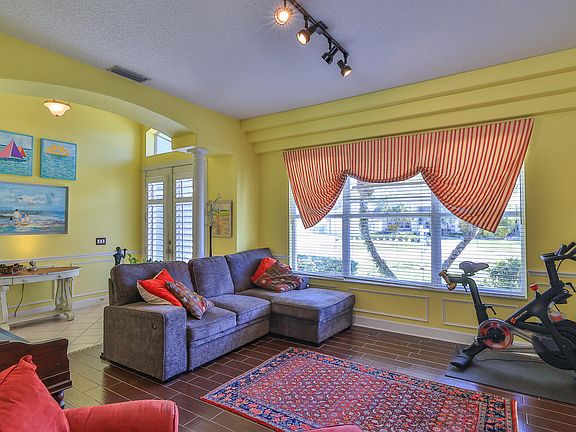 The kitchen is well-appointed with a walk-in pantry and a breakfast bar. The open-concept design seamlessly connects the kitchen, breakfast nook, and family room, which includes a fireplace, all overlooking the private screened pool with views of the conservation area. Perfect for both relaxation and entertaining. The formal living room is currently used as a secondary family room, and the dining room serves as a home office, offering versatility to suit various needs. Conveniently located near Spruce Creek High School, this home is an excellent choice.
