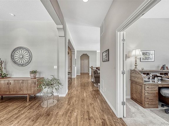 WELCOME TO THE NICEST SITE IN DANCING WILLOWS! THIS EXCEPTIONAL RANCH HOME SIDES TO OPEN SPACE ON A PRIME CORNER LOT! Here you have mountain views, a tranquil setting with beautiful landscaping and direct access to walking trails & the pond. Step inside to a well designed floor plan boasting custom finishes, 10 ft ceilings, gleaming oak floors & abundant light. Very open and inviting! Upon entering is the formal dining room with a wall of windows, and a dedicated study. The space you'll naturally gravitate to is the sunny Great room with its wonderful stone fireplace & tall windows. Adjacent is the chef kitchen perfect for entertaining, featuring an eat-in nook, Maple cabinets, granite counters, pendant lights, Stainless appliances, double ovens & lit pantry (2nd pantry down the hall). Sip your morning coffee on the covered TREX deck taking in the natural surroundings...tree-lined paths and sightings of the resident owl family, nesting birds & flitting hummingbirds. Retreat to the spacious main floor Primary suite with a luxurious 5-piece bath with corner soaking tub, block windows, dual granite vanities, & huge walk-in closet with windows. On the main is also a guest bedroom with en-suite full bath, 1/2 bath, laundry room. The professionally finished walkout basement has a large rec / entertainment room fitted with wet bar, 2 bedrooms, full bath, storage & mechanical rooms, crawl space. New furnace 2021, AC 2022, radon system in place. Pride of ownership is evident throughout this great home. Spend your days doing what you love most as the HOA takes care of landscaping, trees/shrubs/flowers, mowing, snow removal (4" snowfall), road & sidewalk upkeep--all with low fees--plus access to the clubhouse & pool. Here you'll find a true community with friendly neighbors, a great location close to C-470 & Hampden with quick access to Denver & the mountains. Experience the ideal blend of comfort, convenience, and beauty of nature in your new Littleton home!