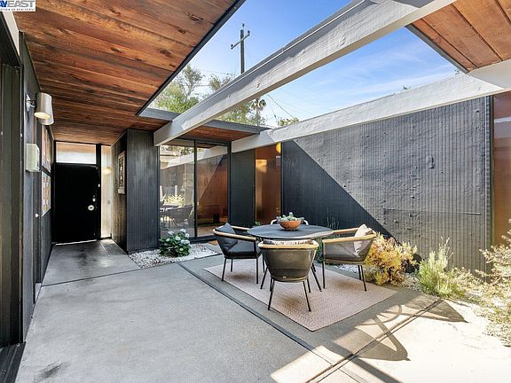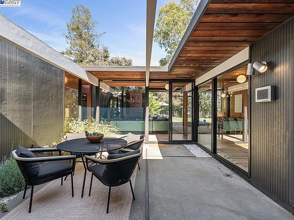 Enchanting & exquisite, one of a kind Eichler home in Castro Valley's Greenridge neighborhood. Extraordinary 4 bedroom, 3 full bath mid-century modern masterpiece that redefines the wow-factor. Built in 1960, and reimagined in 1974 by the original architecture firm of Emmons & Jones, this unicorn of an Eichler boasts over 3,000 square feet per tax records, and over 3,300 measured square feet of living space including a massive primary suite with wardrobe, and Malm fireplace. Respectfully updated & upgraded in all the right places while keeping all the original features intact including open air atrium entrance, unpainted ceilings, mahogany paneling, wood burning fireplace in the great room, & original globe lighting, with 3 remodeled bathrooms including high end designer fixtures, and a chef's kitchen with massive ceramic tile island, tons of storage space, premier GE CAFE appliances, beverage fridge, ice maker, and a rare gas range. Updated systems as well including electrical, heating, sewer lateral, and an insulated foam roof! All situated on a massive and private lot of almost 15,000 square feet with courtyard, separate office, playhouse, 90 feet of new redwood fencing, & a gorgeous manicured & irrigated yard that's ideal for entertaining throughout the year!