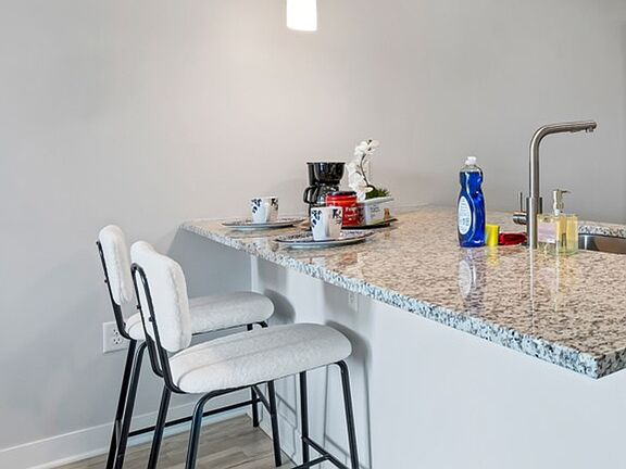 Live in style at Bold on Blvd with this beautifully furnished 1-bedroom, 1-bathroom apartment offering modern living in a desirable St. Peters location, just outside vibrant St. Louis. Enjoy an open-concept layout, sleek vinyl plank flooring, stainless steel appliances, and ample storage. The apartment also features a private patio, a living room, a fully stocked kitchen, and a laundry closet. Unleash your inner chef in the well-equipped kitchen, where stainless steel appliances gleam under modern lighting. Ample counter space provides plenty of room for meal prep or whipping up a culinary masterpiece. Relax in the spacious living area, unwind on the plush couch, or stay productive at the dedicated workspace with a desk and chair. The master bedroom features a plush queen bed, inviting you to sink into comfort after a day of exploring. Pets are welcome with a limit of 2 pets per reservation and a one-time non-refundable pet deposit of $250. No aggressive breeds are allowed, and there is a weight limit of 50 pounds. Enjoy access to community amenities including a swimming pool, dog park, bicycle storage, lounge, pet washing station, pet play area, business center, and fitness center. Bold on Blvd offers the perfect blend of modern living and convenient location. Enjoy easy access to St. Peters' charming attractions and vibrant St. Louis just outside your doorstep. Relax by the resort-style pool, roast marshmallows under the stars by the fire pit, or pamper your furry friend at the dog wash station and park. Situated about 30 miles northwest of Downtown Saint Louis, Saint Peters is a picturesque suburb with tranquil residential neighborhoods and plenty of places to explore. Saint Peters boasts 25 parks and 20 miles of paved pedestrian trails, along with the largest mall in the county, Mid Rivers Mall. The main occupant must be listed on the reservation, and the reservation must reflect the accurate number of guests and pets. Keep noise levels low during late hours to ensure a peaceful environment for all residents. Dispose of garbage and recycling properly in designated areas to maintain cleanliness. Mailbox access is available upon request and requires a refundable key deposit of $35. The property is stocked for mid-term stays, so only starter toiletries are provided. Annual preventive maintenance checks may occur, and emergency maintenance access is reserved if urgent repairs are required. A dedicated workspace with a desk and chair allows you to stay productive, making it easy to work from home.