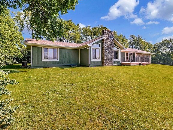 Discover your dream ranch home on over 6.5 wooded acres! With 3600+ sq ft, this retreat offers open living, dining, kitchen space with updates. Enjoy vaulted ceilings and a stone fireplace in the living room. Fully finished lower level, composite decking, pole barn, and fresh exterior stain complete this serene haven.