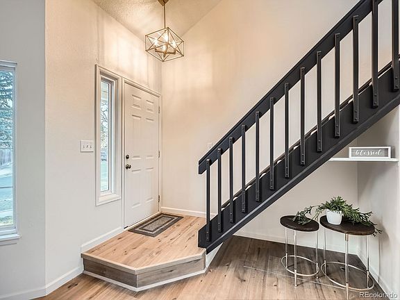 Better than new! Remodeled single family home in Castle Rock for under 500K! Super rare find with a main floor primary bedroom and backing to open space! This 3 bedroom, 2 bathroom home has been remodeled top to bottom, with a new roof (2023.) The kitchen features stainless steel appliances, granite countertops, updated grey cabinets, custom backsplash, and an open floorplan. The first floor features brand new Luxury Vinyl Plank floors and a full bathroom, with a new vanity and lighting. Living room has a real wood-burning fireplace to warm up on those Colorado winter days. Upstairs you will find 2 bedrooms, and an additional full bathroom. Light floods into the home, and vaulted ceilings make it feel very open and spacious. Enjoy the beautiful Colorado summers on your deck and private backyard, with no rear neighbors! Only minutes away, enjoy the shops and restaurants of booming downtown Castle Rock, and endless parks and trails in Founder's Village. Steps to Mitchel Creek Canyon Trail!