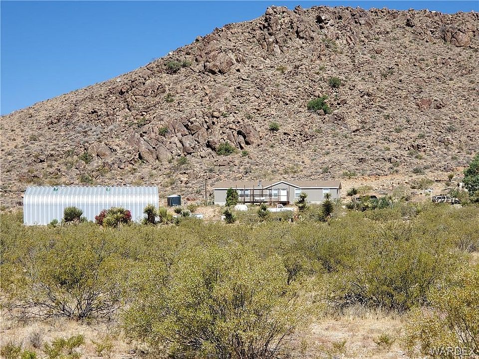 12+ ACRES NESTLED UP AGAINST A MOUNTAIN. Enjoy peace, tranquility and beautiful panoramic mountain and valley views on this 12+ acre parcel with a very nice 4BR, 3BA, 2,113 sq. ft. DW manufactured home with a front deck and a 1,552 sq. ft. Future Steel Building shop. The interior of the home features a split floor plan, cozy wood burning fireplace in the living room, large light and bright country kitchen with pantry, eat in area, lots of cabinet and counter space and space above cabinets to display all your treasurers and collectibles, separate dining area off kitchen, spacious master bedroom with walk in closet, large master bathroom has a soaking tub to sit, relax and let your cares drift away and separate shower. Three nice size guest bedrooms, Jack and Jill full guest bathroom between two of the bedrooms, 3rd full guest bathroom plus an extra room for a den/office/craft room. Carpet in living room, dining room and all bedrooms, vinyl flooring in kitchen, utility room and all bathrooms. Utility room off kitchen, washer, dryer and refrigerator stay. The shop features three skylights to let in natural ligh, t a loft and is large enough to park a motorhome. Mostly low water desert landscaping, easy access and paved driveway lead you to this must see property. Don't wait schedule your personal tour today!