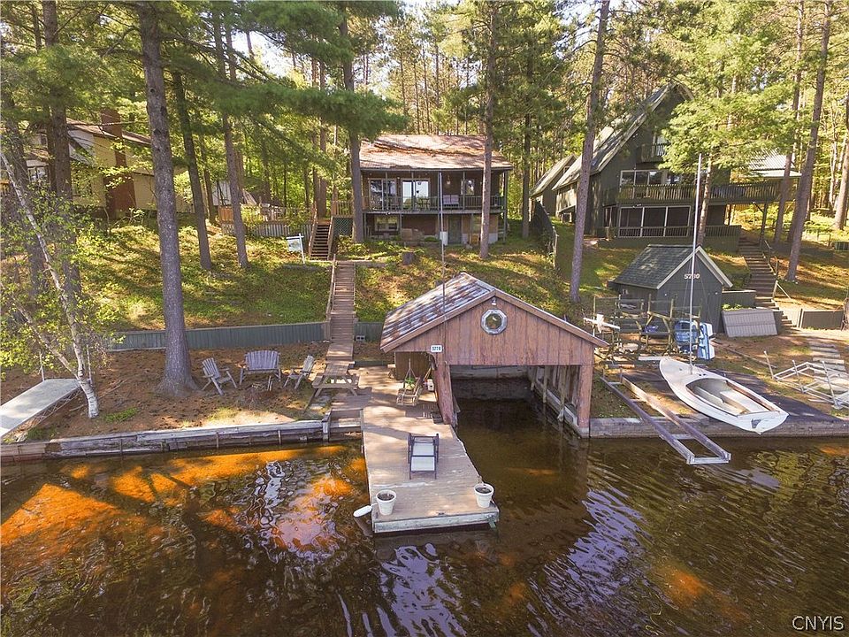 Here is an opportunity to own a unique piece of Brantingham waterfront, where the cottage is not high above the water front and the water frontage is 90'+-. The cottage has been used year round from time to time needing some of your touches, to make up to date. There is a single slip boat house, portable steel dock, 20+' deck, covered porch, and most appliances convey.