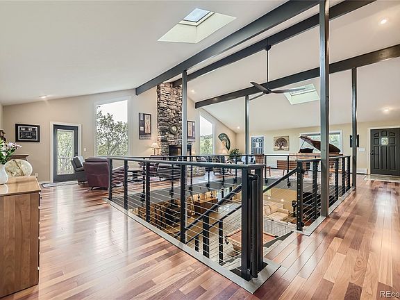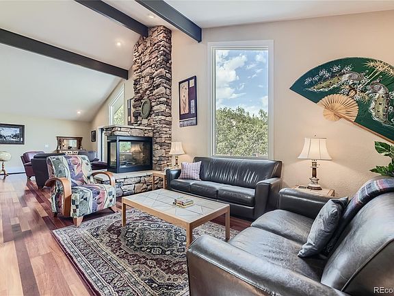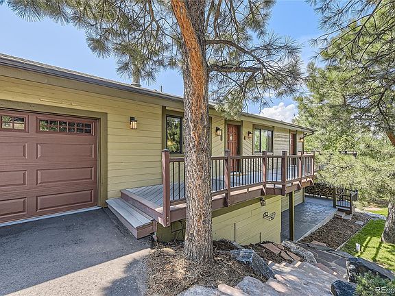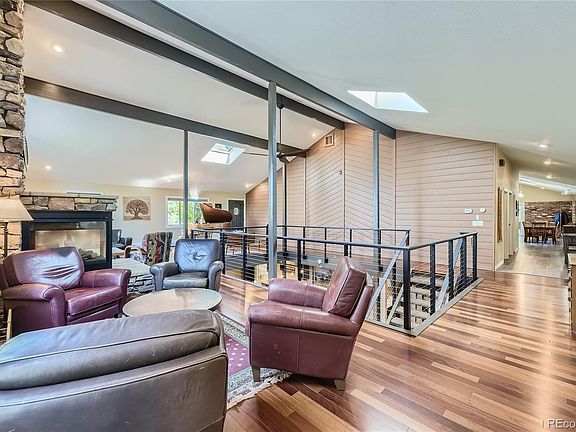 Welcome to your private nature preserve. Gambel oak groves, moss rock outcroppings, and stately willows and cottonwoods frame this thoroughly updated and carefully maintained home on over three acres in ever-desirable Willowbrook. A soaring great room and spacious, light-filled kitchen make daily life special and entertaining a pleasure. Two main-level bedrooms have full bathrooms, with radiant heated floor and walk-in shower in the master. Downstairs rooms currently used for storage and a home gym can equally serve as bedrooms or office space. The downstairs bathroom has an adjacent sauna. Enjoy all of Colorado’s seasons from the two-level wrap-around deck and secluded back patio. Oversized three-car garage with enlarged middle door has cabinet space and countertops for workshop crafts. Attic above the garage has built-in shelves and tons of additional storage. Breeze-Aire evaporative cooler is ducted to the whole house. Quiet hot-water baseboard heat with new boiler in 2019. New septic tank, driveway, and exterior paint in 2023. 2016 roof and skylights. Willowbrook community amenities include use of the Chief Colorow Amphitheater, tennis/pickleball courts, volleyball court, playground, horse stables, and 800 acres of private foothills open space. Move in and enjoy!