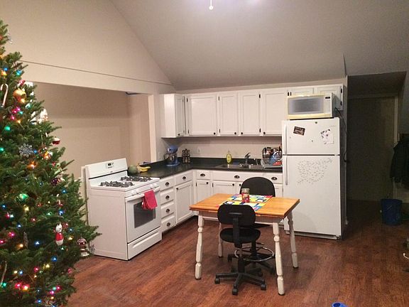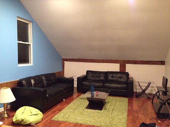 Second floor apartment with vaulted ceiling and recently renovated bathroom. Tenant is responsible for heat and cable/internet. Electric included. No pets, no smoking, offstreet parking for 2 vehicles, plus some extra room for guests (shared with other units in the building). 1 year lease, 1 mo security deposit. I do references, background and credit checks on all applicants.
