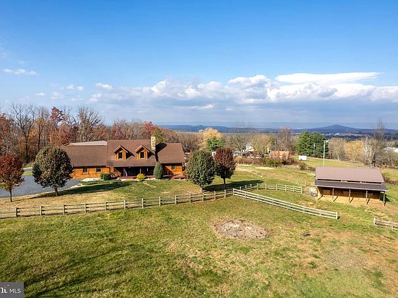 In an Airbnb - look on show time available times or call agent - Over the mountain and through the woods brings you to this gorgeous log home that sits on over 4 1⁄2 acres. This timber log home sits on the top of a hill with views that will invite you to sit on the porch and delight in the views of the Massanutten Mountain. The large French doors are complete with screens so you can enjoy nature from the expansive great room. The large stone fireplace is the focal point of this inviting home. The great room is open to the dining area and kitchen, that supply lots of room for your guests and family. In addition to the dining area, there is additional seating at the kitchen island. The design of this home gives ample storage with the oak cabinets and the large walk-in pantry. From the dining area you will have even more entertaining space on the large deck that overlooks the pool, the waterfall pond and firepit area. Come back inside to view the open and bright primary suite. The large windows bring natural light and views from the loft area. The large walk-in-closet and en-suite complete your retreat with a steam-jetted shower. As you walk up stairs you will notice the craftsmanship in the staircase that lead to additional bedrooms, all of which have ample closet storage and an additional bathroom. As your upstairs you can look over the great room and notice the attention to detail in this crafted timber home!! There’s even more finished square footage in the basement that house the laundry room and a large family room (or maybe your own personal man cave!!). In the basement you also find an additional area that would make a great home office. This basement is a walk-out that brings you to the tranquility of the back yard. Not only do you have ample space to entertain on the tiered deck, a firepit, and a pool there is also an expansive workshop. Within this workshop the tall ceilings and large garage door provides the ability to park your RV or boat and has a heat source too. The attached 2 car garage gives you even more areas for your storage with utility closets, cabinet storage and a utility sink. Love animals? Bring them, because there is also a 4-stall horse barn and a chicken coop!! There has been so much love and updates poured into this home to make it move in ready! Most furnishings will convey. The possibilities are up to you, so bring your dreams with you as you tour this property! Make your appointment today, so we can show you all this property offers!