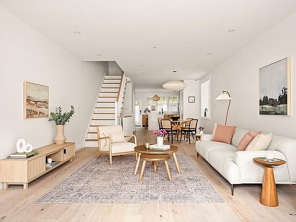 Thoughtfully redesigned and rebuilt from the ground up, the home measures 16’ 8” wide by 53.5’ deep and features a beautiful James Hardie Board façade, a welcoming center entrance, and a bluestone front patio—setting the tone for the refined elegance found throughout.