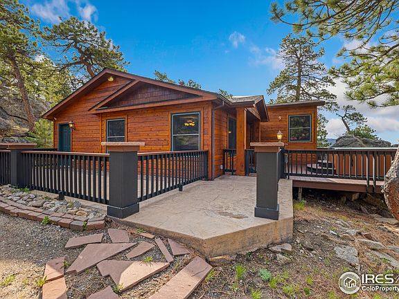 Discover your own mountain retreat where dramatic rock outcroppings, soaring pines, and sweeping views of Longs Peak create an everyday backdrop that feels like a getaway. High atop the quiet Meadowdale Hills neighborhood, just 10 minutes from downtown Estes Park and 15 minutes to Rocky Mountain National Park, this home offers the perfect balance of solitude and convenience. Spend your mornings sipping coffee as the sunlight dances across the peaks, unwind in the evenings from the hot tub under a canopy of stars, and explore nearby Hermit Park, only 2 miles away, for hiking, mountain biking, and wildlife watching. Inside, the functional single-level floorplan invites easy living, with south-facing picture windows that frame postcard-worthy views, a cozy wood stove for chilly mountain nights, and multiple living spaces, including a bonus room and office nook -- perfect for remote work with inspiration at every glance. Step outside to decks on three sides of the home, where nature surrounds you in every direction. The oversized two-car garage and generous crawlspace offer plenty of room for your gear. This property also features a corral, a brand new roof and was recently stained. With no short-term rentals allowed, you'll appreciate the peaceful, residential feel of this mountain community. Whether you're looking for a full-time sanctuary or a private mountain escape, 578 Alpine Drive delivers the Colorado lifestyle you've been dreaming of.