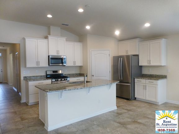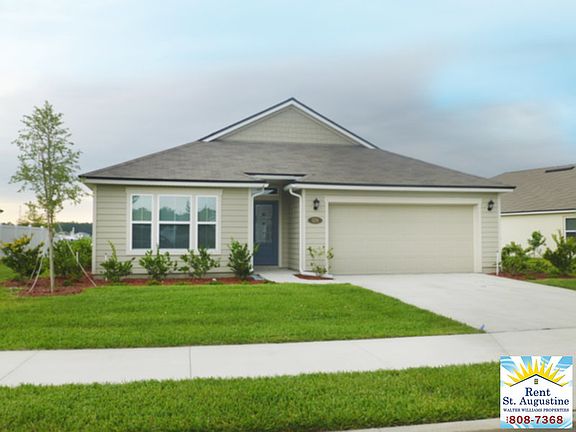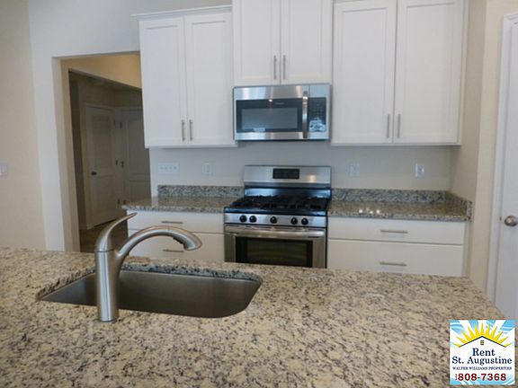 New community! New construction! Spacious floor plan offers upgraded kitchen; features granite counters, stainless steel appliance package, quiet-close cabinets, and eat at bar. Open LR/DR overlooks large lake. Large master suite with large soaking tub and walk in shower, large walk in closet. Split plan has three bedrooms and bath. Laundry Room with W/D. 2-car garage. Tiled throughout living areas. Community features pool, clubhouse, sports fields and easy access to CR207, I95, beaches and downtown. Nearby Epic movie theater and dining. Enjoy your weekends because lawn service included!! www.rentstaugustine.com
