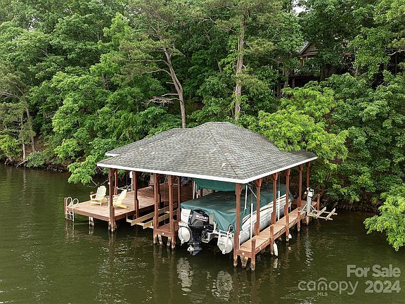 Spectacular waterfront home with walls of glass, big view and deep water! This unbelievable open floor plan has an enormous great room with cathedral ceilings and beautiful rock fireplace! The fabulous open kitchen features granite, 2 islands and a large built-in china cabinet. Primary suite has a vast water view! Venture downstairs to find the large den, wet bar and fireplace. There are 3 bedrooms and each has private doors leading to the covered patio. Large open decking looking out at huge view! Big boathouse with extremely deep water and 2 boat slips. You have to come check out this Lake Tillery gem!
