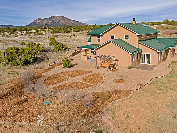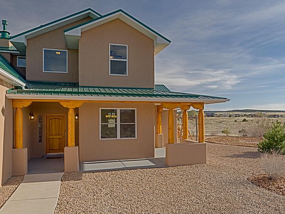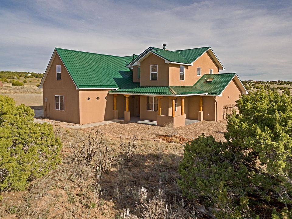 Live in your own east mountain retreat! Amazing sunset views of Sandia Mountain. Custom Northern New Mexico home with soaring ceilings, entryway vigas, corbels & clerestory windows create natural light by day & moonlight by night. Entertainers delight with gourmet kitchen & open great room floor plan. Wonderful master suite with jetted garden tub & steam shower. 3 BR, office, loft, expansive bonus room, finished & insulated 3 car garage on 7.68 +/- acres. A separate area outside has its own power, water & septic hookup for a possible future barn/office. Energy efficient home - 58 HERS rating - features include solar hot water system, passive solar sunroom, compact fluorescent lamp lighting & radiant heat, plus refrigerated air & heat pump. Many additional features - come see for yourself!